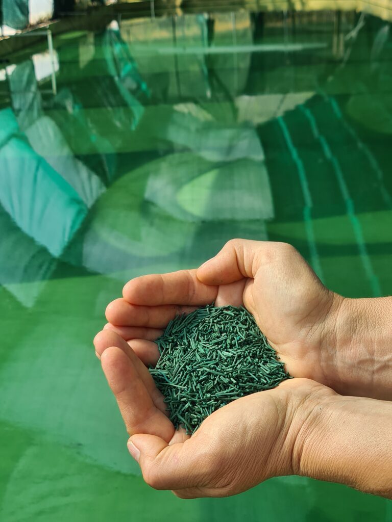 La spiruline est un micro-organisme vivant, j’en prends soin à toutes les étapes de la culture jusqu’à sa mise en brindille par séchage en douceur pour conserver au maximum ses propriétés d’origine.